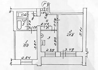 Площадь общая: 48.7, жилая: 28.8, кухня: 7 м², потолки: 2.5 м