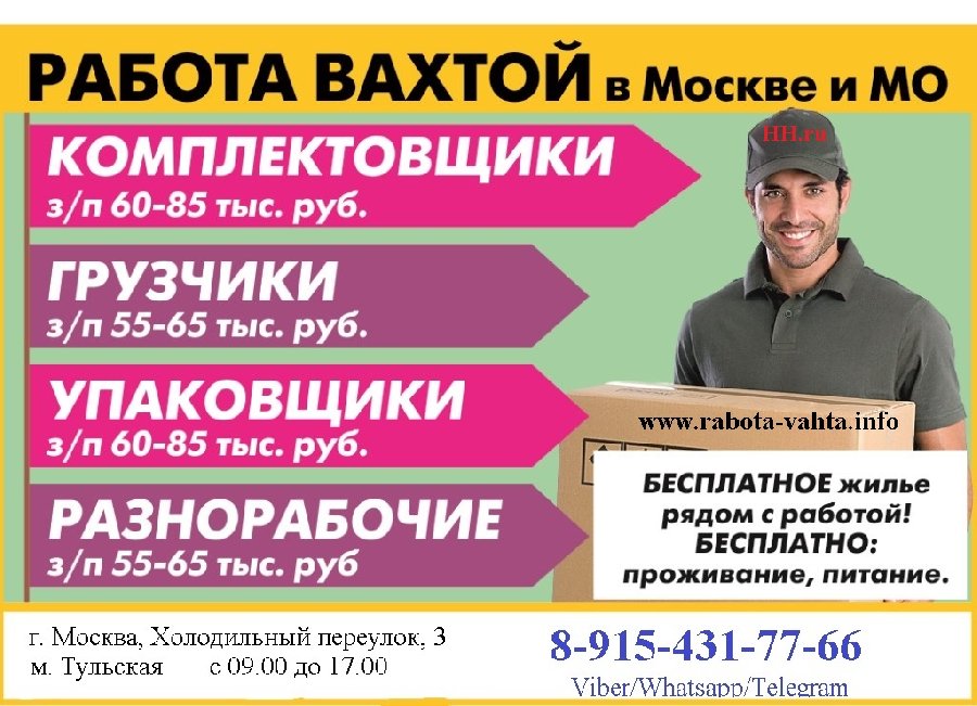 - График работы 6/1, 7/0 - Первый аванс через 5 дней - Вахтовый метод в г. Москва - Окончательный расчет - сразу - Еженедельные авансы, питание - Длительность вахты 30, 45 и 60 дней - Трудоустройство и заселение - в день обращения - Все условия для комфортной работы и проживания упаковщика
