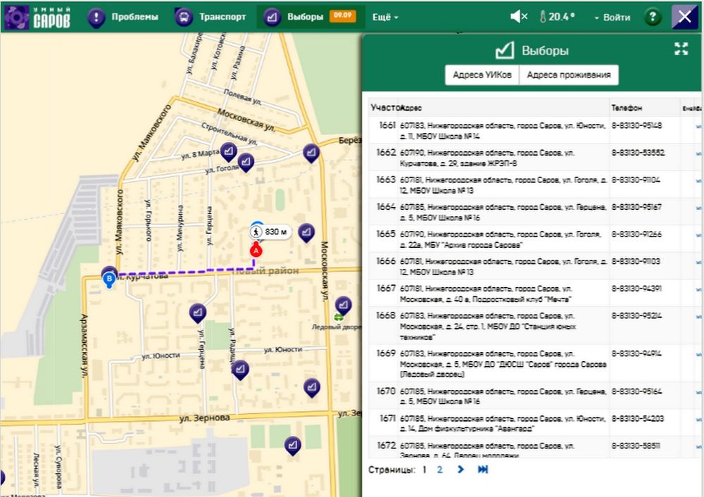 Возможность поиска своего избирательного участка и пути к нему появилась на этой неделе на муниципальном ресурсе, продвигаемом администрацией Сарова. В списке разделов — жалоб на плохие дороги или расписаний автобусов — теперь можно найти пункт меню «Выборы». Страница выдаёт общие списки всех адресов (жилых и комиссий) в нашем городе и позволяет отыскать свой УИК.