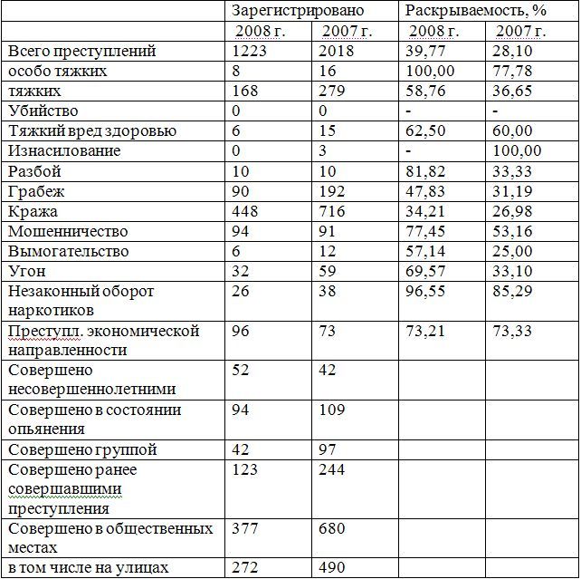 Как и прежде, самыми распространенными уголовными деяниями остаются кражи (51,3% от всех преступлений), сообщает сайт «Совершенно секретно». Это значительно меньше, чем в 2007 г. Среди осужденных с начала года — неработающие (129 человек), малого бизнеса (64) и учащиеся (60). Зарегистрировано 20 случаев незаконного оборота наркотиков (в 2007 г. — 21).