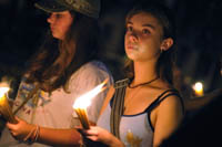 В среду вечером у Вечного огня началась молодежная акция в память о погибших в результате грузинской вооруженной агрессии. У мемориала собрались не только школьники и студенты, но и семейные пары и другие неравнодушные горожане. Собравшиеся зажгли сотни свечей вдоль пешеходной дорожки по проспекту Ленина, и, взявшись за руки, почтили память павших минутой молчания.